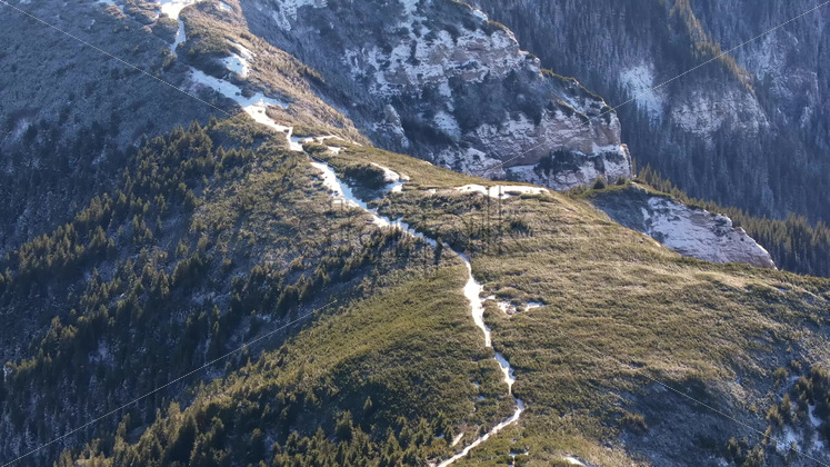 Aerial drone view of sunrise in the mountains. Ceahlau National Park, Romania Royalty Free Stock Video Footage