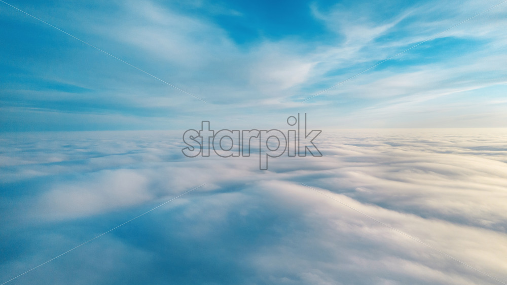 Aerial view from a drone flying above the lush clouds