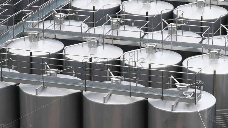 Aerial view of steel tanks from a wine factory Royalty Free Stock Video Footage