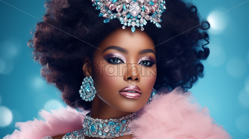 Afro american woman portrait winter queen fashion