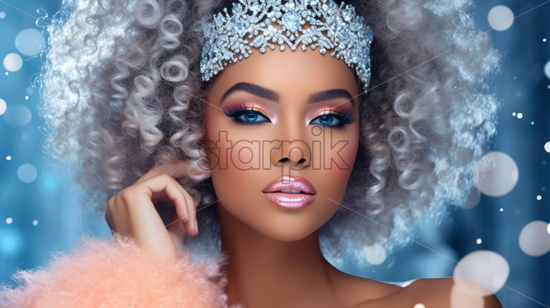 A young caucasian smiling woman with patches under her eyes looking in the mirror. Skin care theme