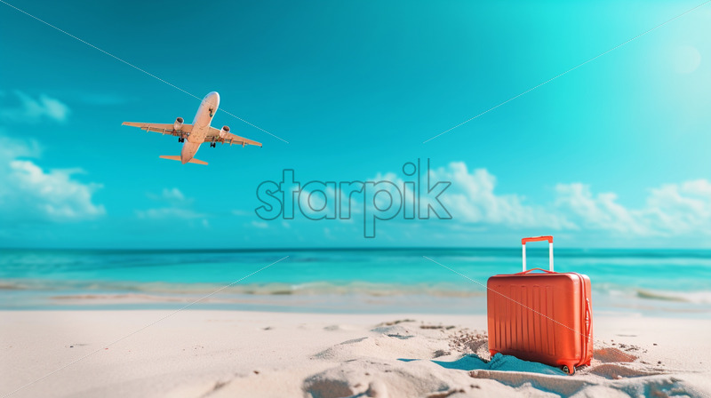 Home » Shop » Uncategorised » Airplane , beach with a suitcase in the sand