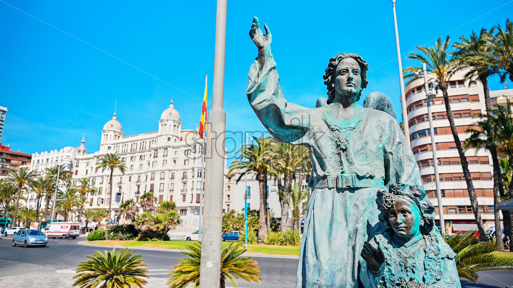 Alicante, Spain – May 24, 2025: Bronze statue of kids playing leap-frog on the palm-lined promenade at Playa de San Juan Royalty Free Stock Video Footage