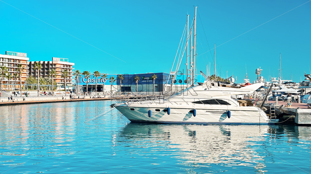 ALICANTE, SPAIN – MAY, 2023: View of boats at the port near shoreline