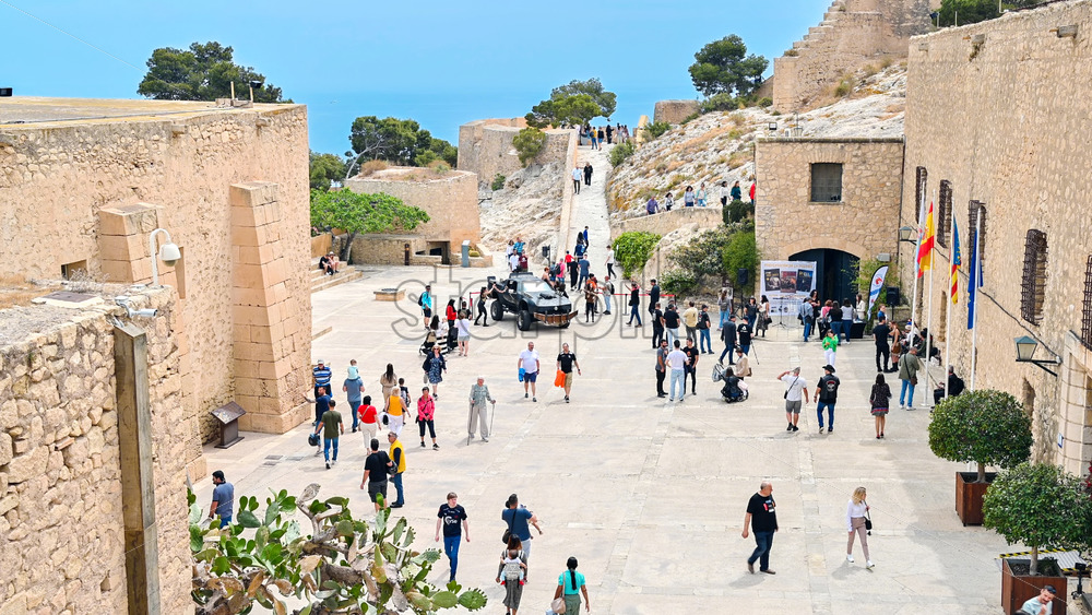 Aerial drone view of the Santa Barbara Castle on the coast of Alicante, Spain with the city and the sea on the background. Vertical Royalty Free Stock Video Footage