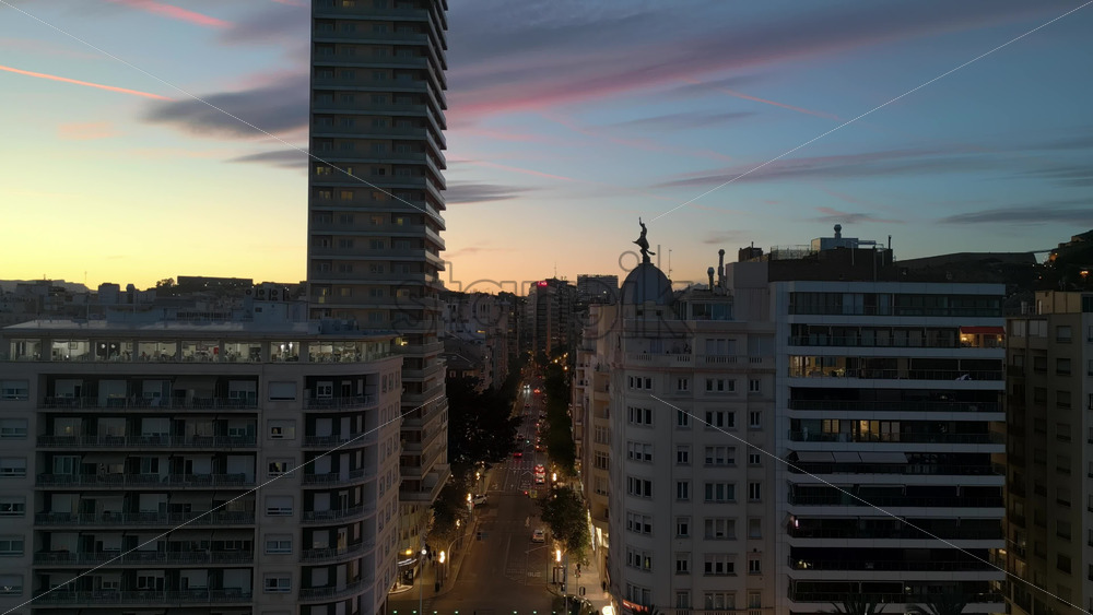 Alicante, Spain – June 20, 2025: Aerial drone view of cars moving around the city at sunset in Alicante, Spain Royalty Free Stock Video Footage