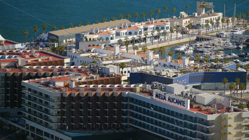 Alicante, Spain – May 20, 2025: Alicante marina with the Melia Alicante hotel and Casino Mediterraneo Royalty Free Stock Video Footage