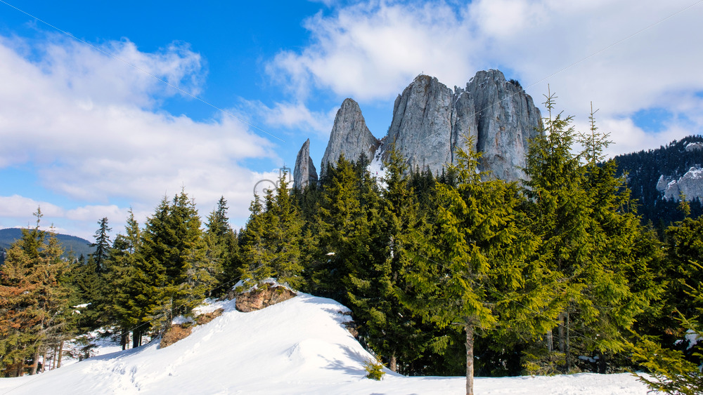 Amazing monumentary rock hidden in the greenery of the mountains in winter season