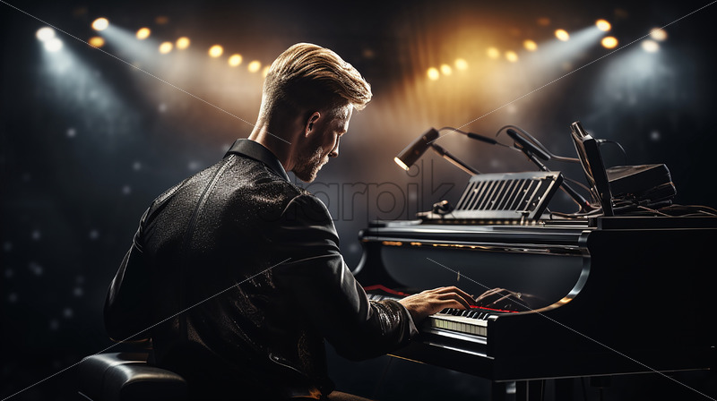 A blues musician takes the stage, fingers dancing across the strings of a guitar. Their face is immersed in the raw emotion and soulful rhythms of the music, channeling their innermost feelings into a captivating performance.