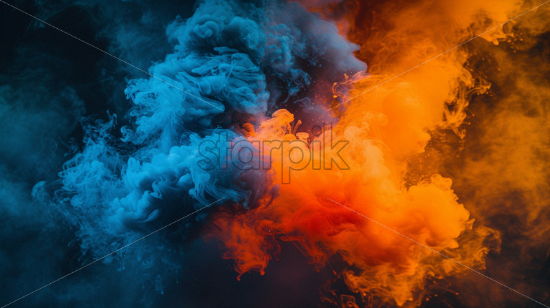 An abstract background of blue and orange smoke, explosion