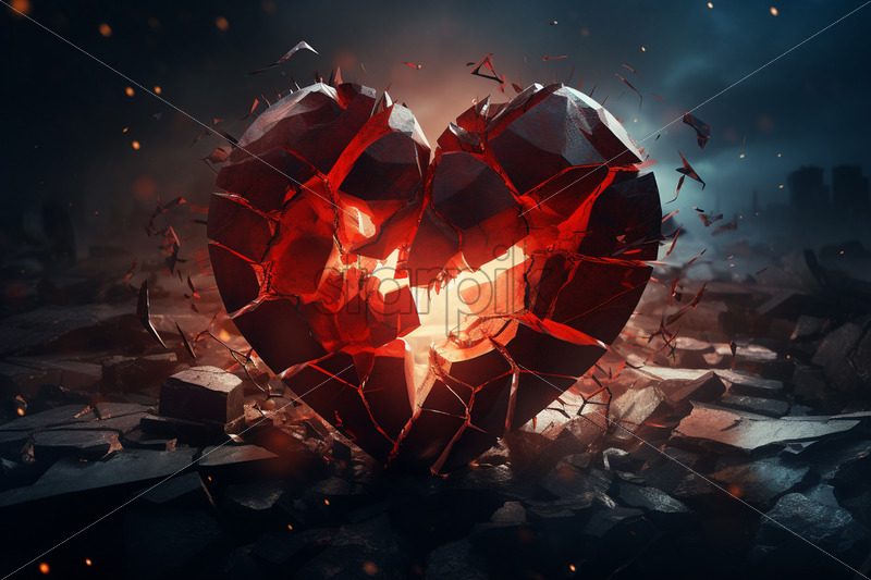 An abstract style heart that is broken into many pieces