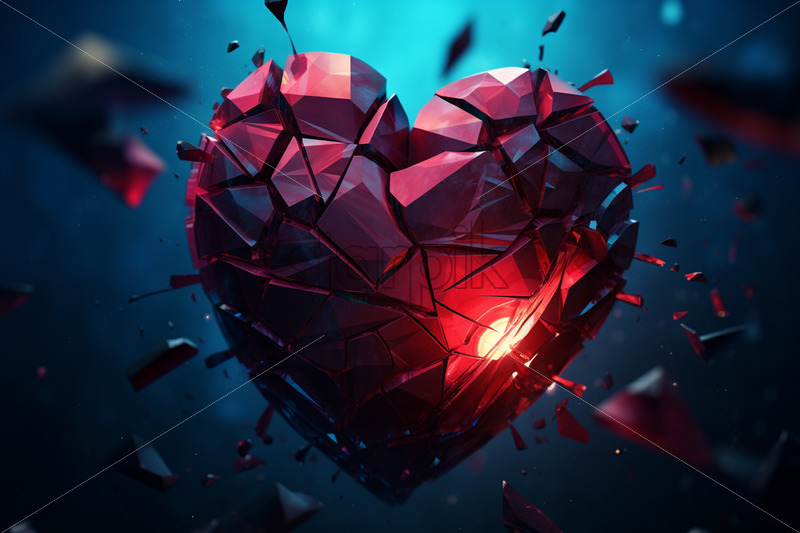 An abstract style heart that is broken into many pieces