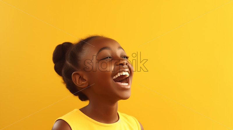 Close-up shot of a young caucasian girl with curly long dark brown hair and bangs. Freckles on the face. Expressing tenderness. Isolated background