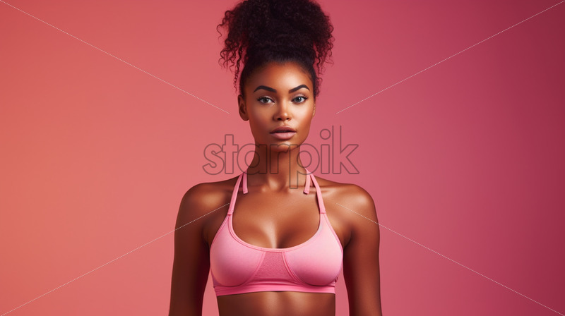 Home » Shop » Uncategorised » An African woman in fitness clothes on a pink background