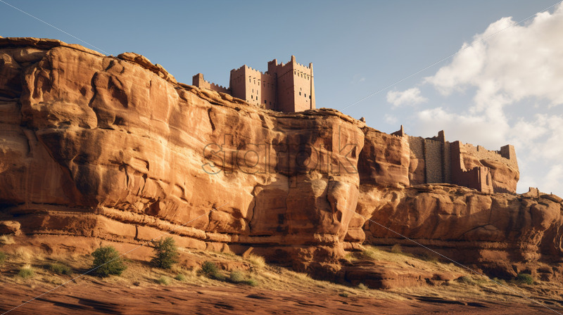 The surreal beauty of a desert sandstorm enveloping an ancient ruin