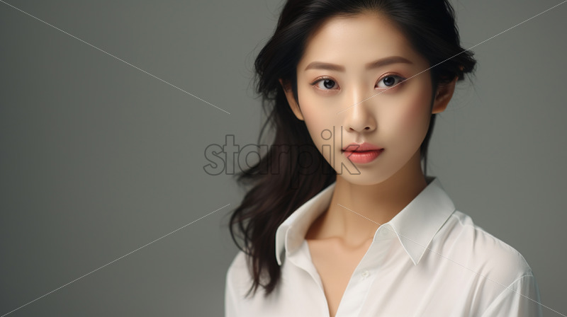 An Asian woman in a white shirt