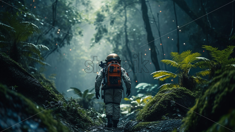 An astronaut in the jungle