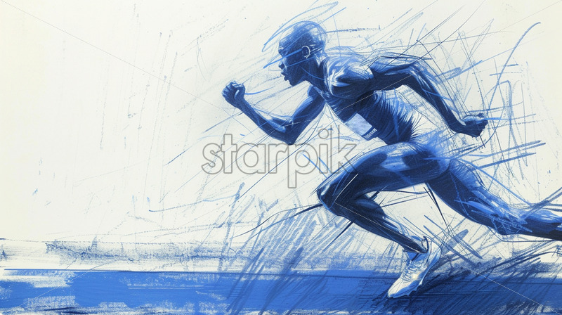 Home » Shop » Uncategorised » An athlete runs on the track, sketch in blue charcoal