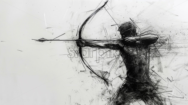 Home » Shop » Uncategorised » An athlete shooting a bow, sketch in black charcoal