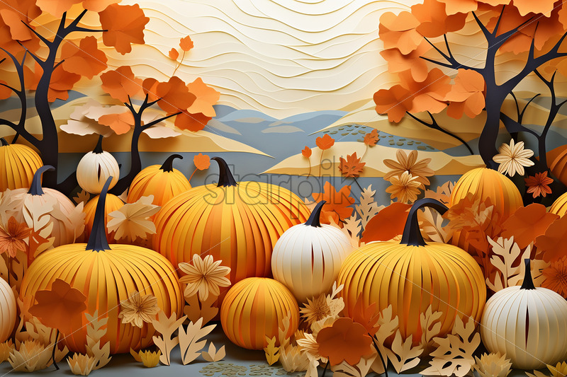 An background of pumpkins, created from paper