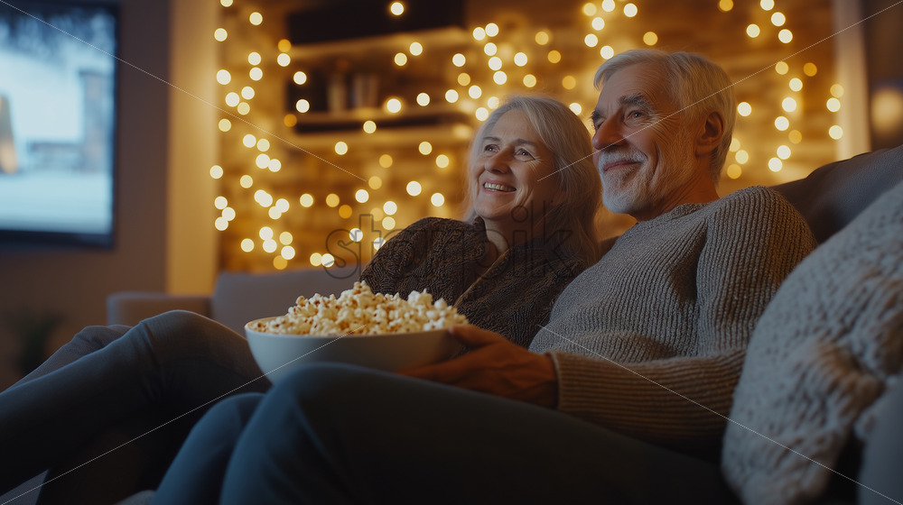 Home » Shop » AI Illustration » an elder couple binge-watching tv favorite series on a modern couch