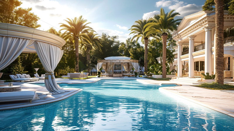 Home » Shop » Uncategorised » An extravagant pool party at a luxurious mansion, complete with VIP cabanas and a DJ booth