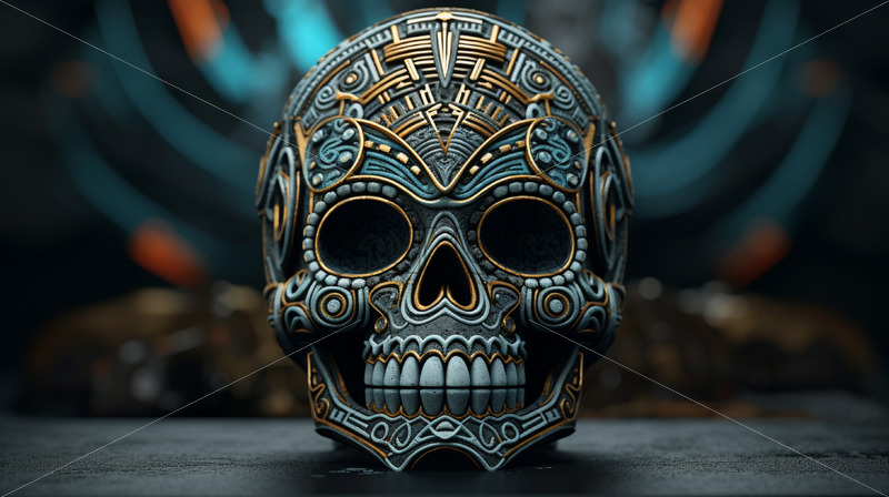 Home » Shop » Uncategorised » An illustrated skull in Aztec style