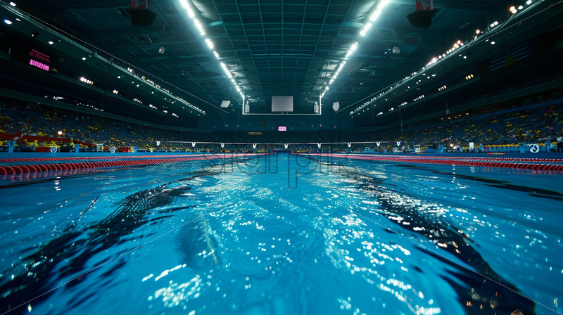 Indoor pool area with a spacious deck and big pool in a cinematic ambience but cozy area