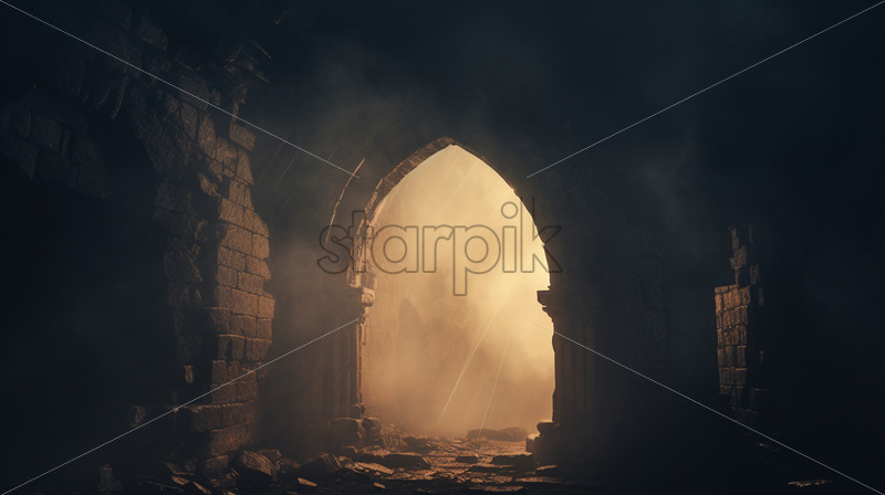 HUNEDOARA, ROMANIA – MAY, 2023: View of the Corvin Castle interior. Ancient paint of a man