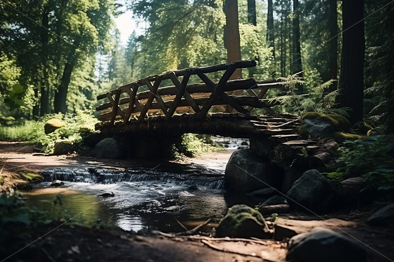 An old bridge in an old forest
