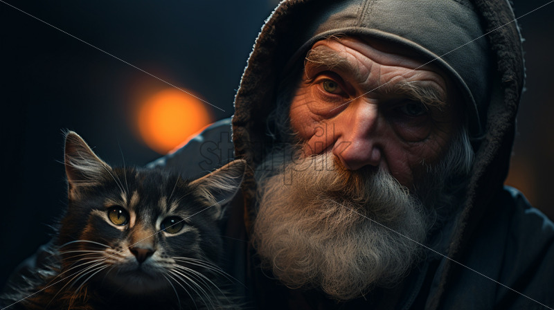 An old man with a cat