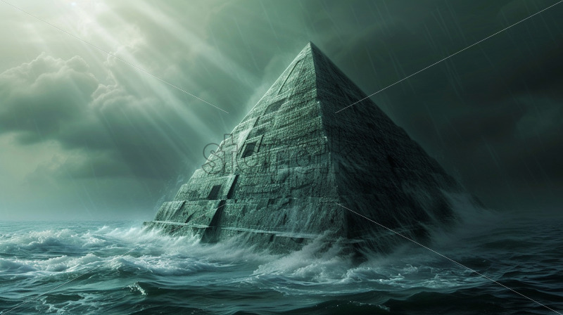 An old pyramid in the middle of the ocean