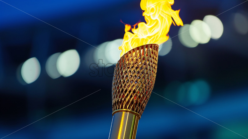 An Olympic torch on the background of a stadium