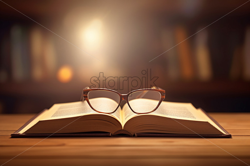 An open book with glasses on it