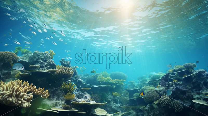 An aquatic landscape of a coral reef