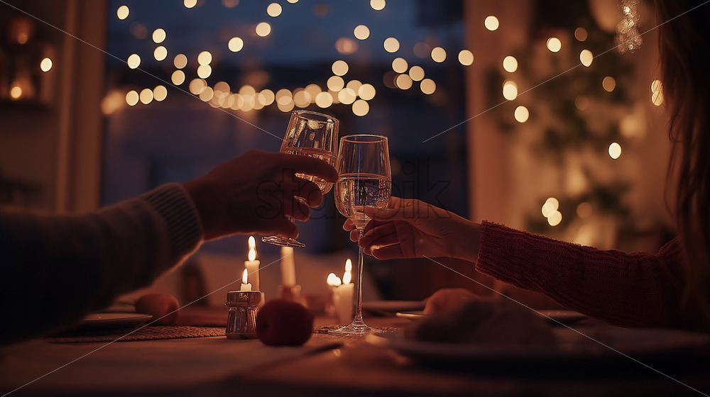 anniversary celebration romantic champagne and lights