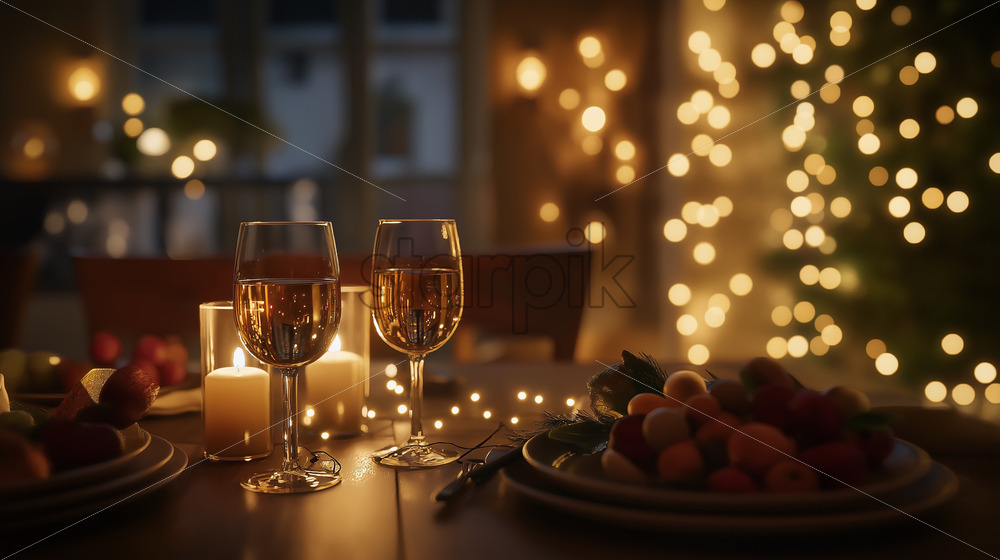 A wooden table with flowers illuminated by soft hanging lights. Vertical Royalty Free Stock Video Footage