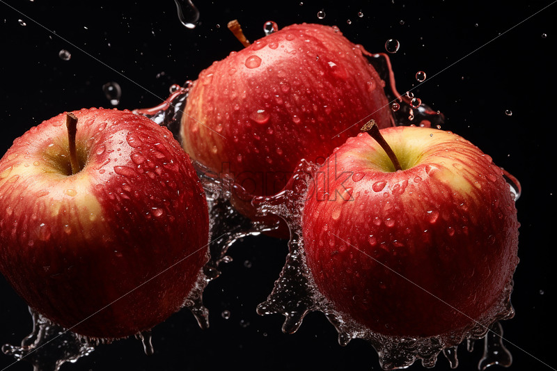 Home » Shop » food » Apples with splashes of water on them on a black background