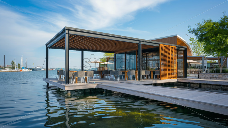 Enjoy waterfront dining at our floating restaurant pavilion, crafted with buoyant materials and panoramic windows for scenic views.