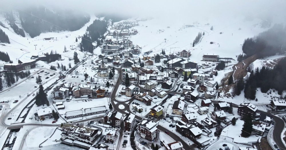 Arabba, Italy – January 8, 2025: Aerial drone view of the Arabba mountain village in the Dolomites, Italy Royalty Free Stock Video Footage