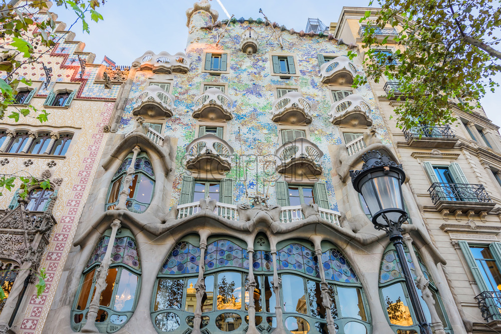 Beautiful architecture facade at famous Passeig de Gracia street Eixample district, Barcelona, SPAIN
