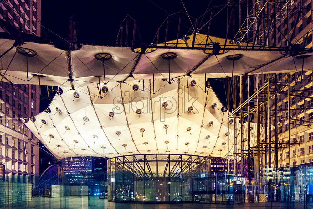 Arhitecture of big arch defense at night. Paris, France Royalty Free Stock photo