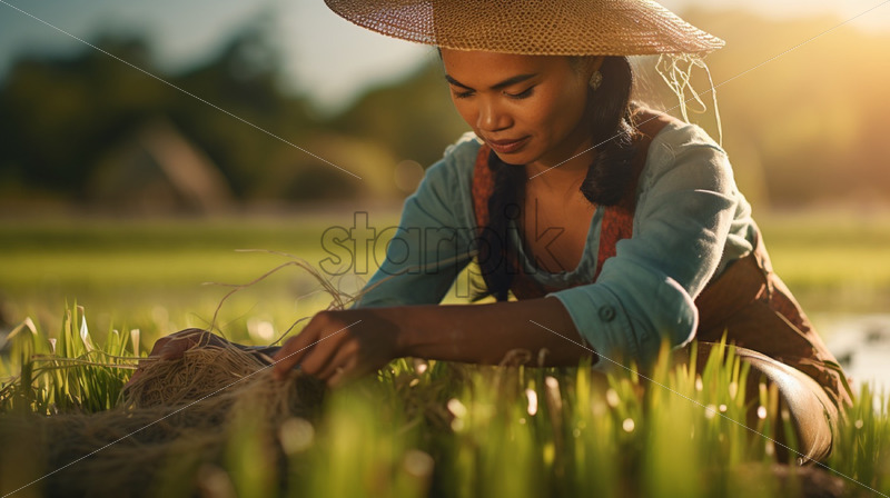 A diligent potato farmer in the expansive potato fields during a bright afternoon, with the focus on the basket filled with freshly dug potatoes.