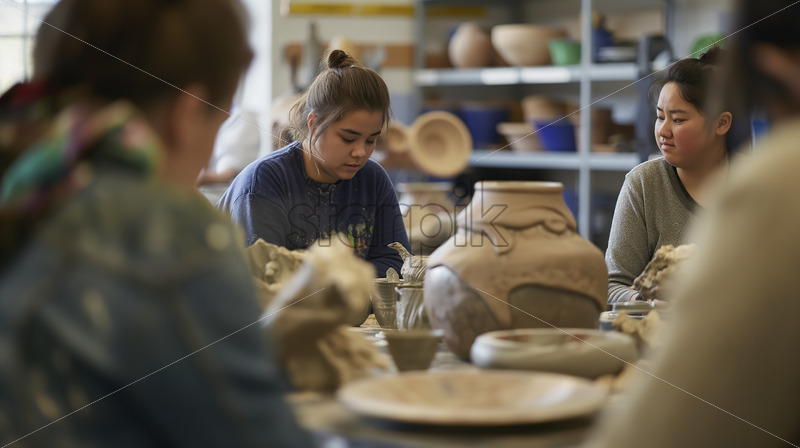Aspiring artists attending a pottery workshop, learning new techniques and expressing their creativity in a supportive environment.