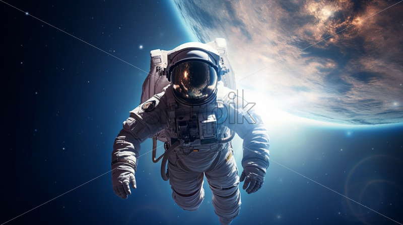 Astronaut admiring a distant galaxy. Cosmic exploration