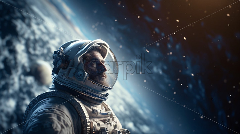 Astronaut admiring a distant galaxy. Cosmic exploration