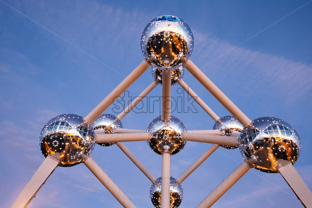 City buildings facade at Grand Place in a sunny day. Bright clear sky on background. Negative copy space, place for text. Brussels, Belgium Royalty Free Stock photo