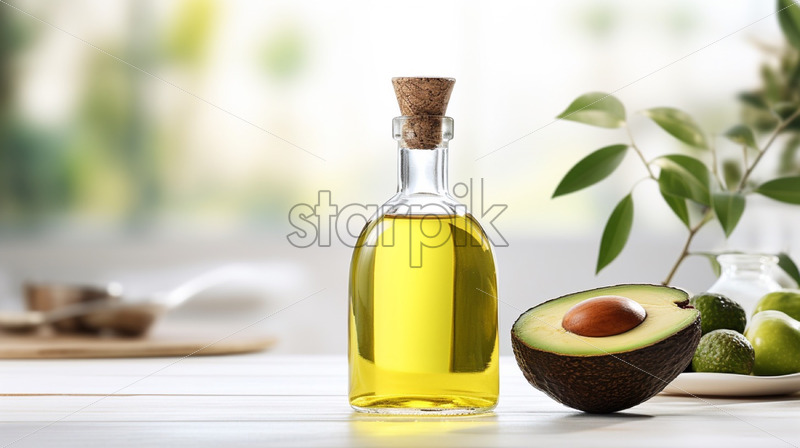 Avocado oil bottle on a natural background