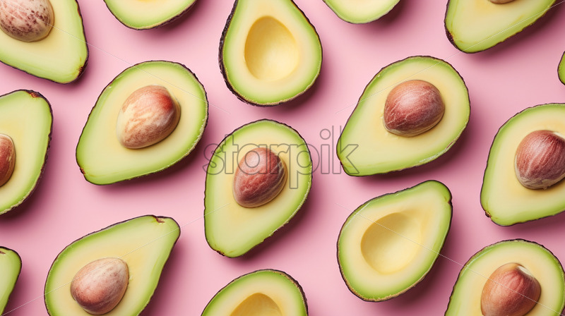 Home » Shop » Uncategorised » Avocado slices neatly arranged on a pink background