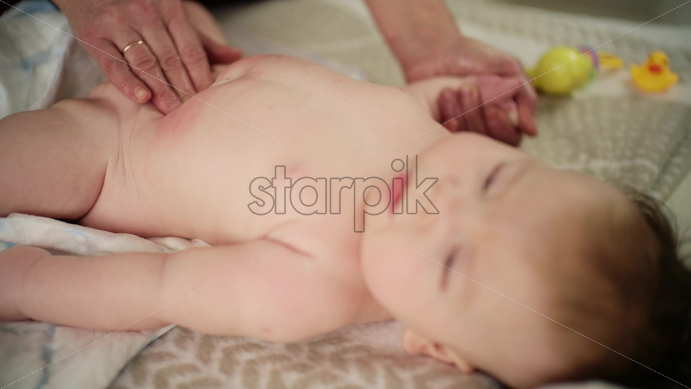 Home » Shop » 1 Video » Baby lying on their back while an adult massages them and performs mobility exercises